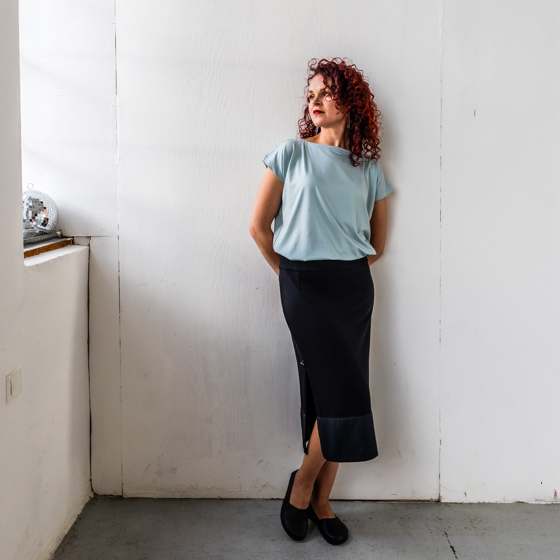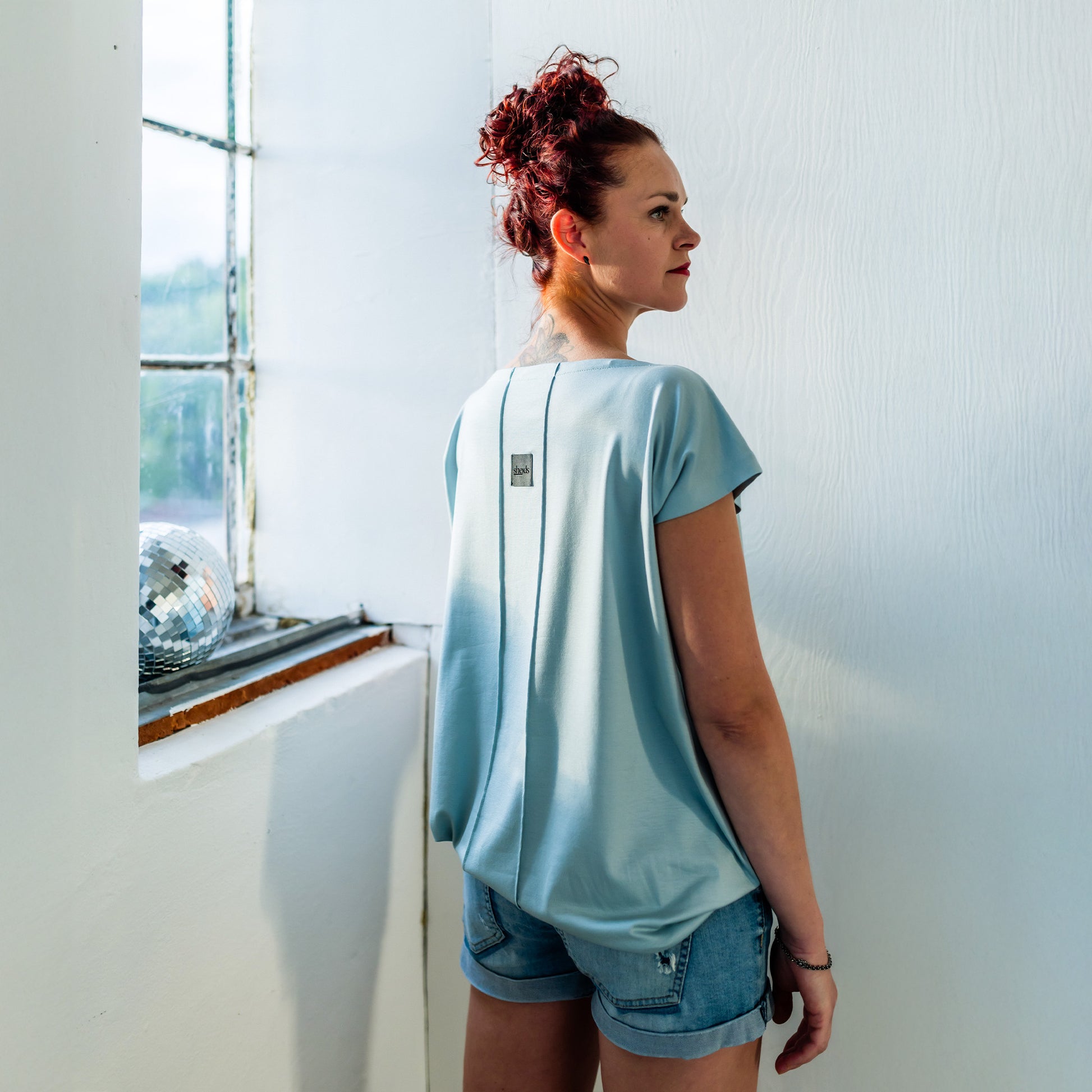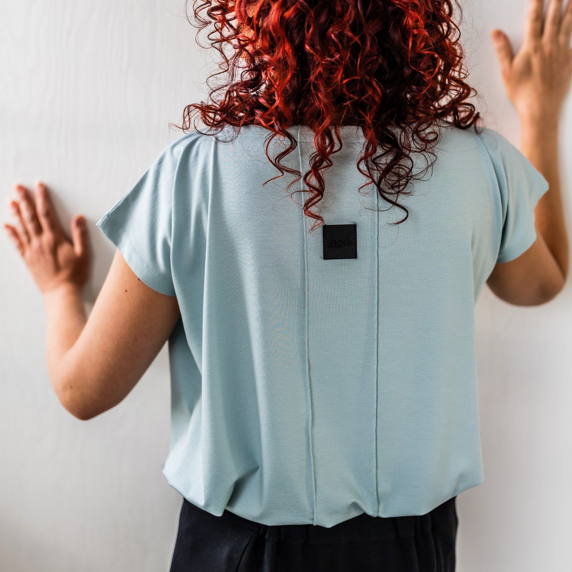 Lehký, volný top z tencelového úpletu je esencí ležérní elegance a pohodlí. Vsadila jsem opět na náš signifikantní TENCEL™ Lyocell. Vzdušný, splývavý materiál s lehkým leskem a přirozenými termoregulačními vlastnostmi. Na zádech je propracovaný detail s logem z pratelného papíru. Pečlivé řemeslné provedení a důraz na detaily. Kryté švy pro čistý vzhled.Pro dokonalý oversize look zvolte velikost L.